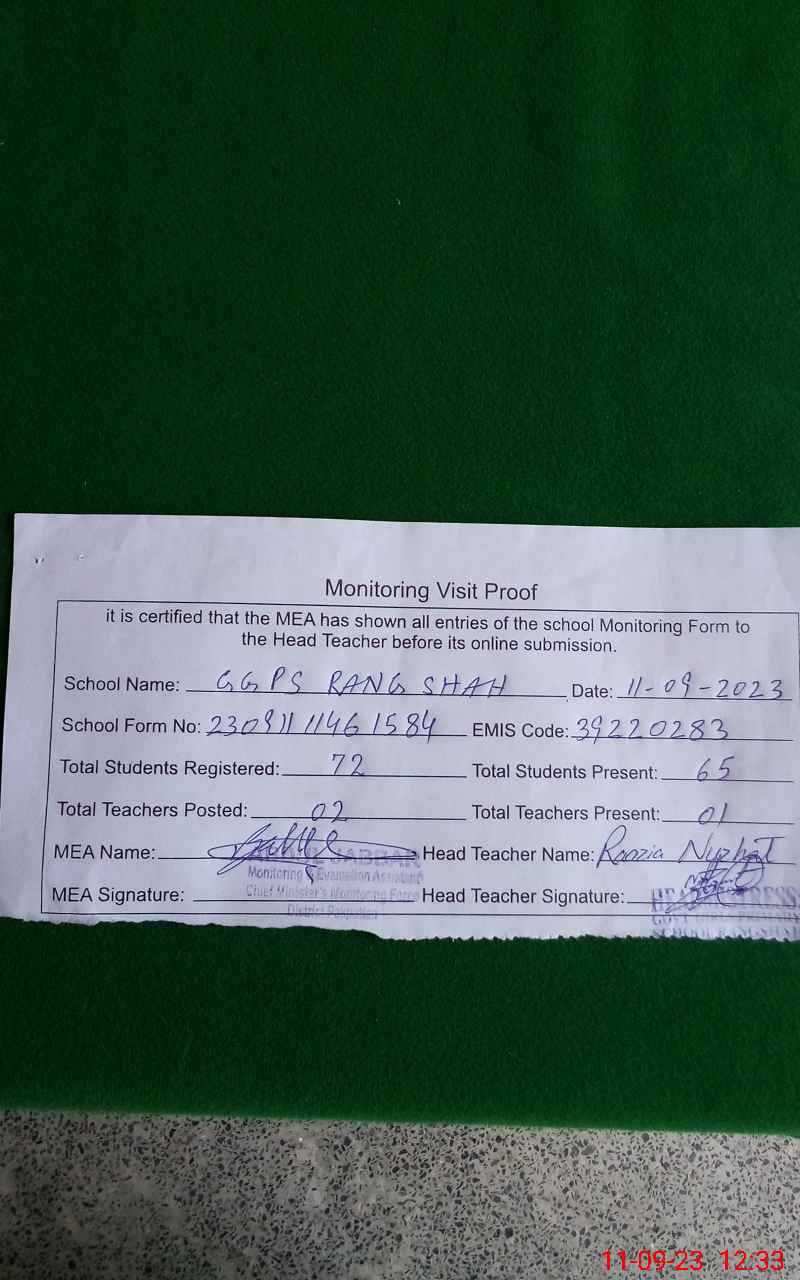 | EMIS Code: 39220283 | Name of School: GGPS RANG SHAH | |||
