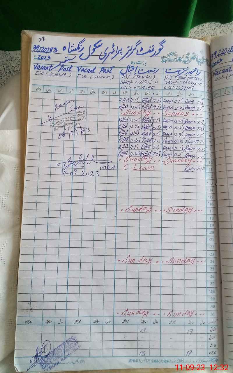| Name: RA**** NU**** Designation: (School Headmaster's/Headmistress's) PST Phone/Cell Number: 03**** |