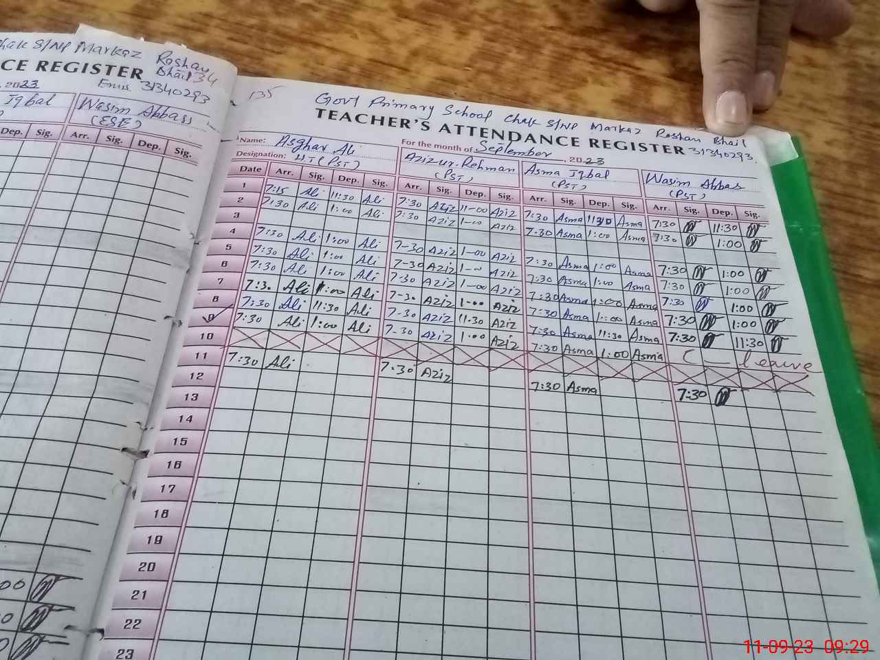 | Name: As**** Al**** Designation: (School Headmaster's/Headmistress's) PST/PTC/JV Phone/Cell Number: 03**** |