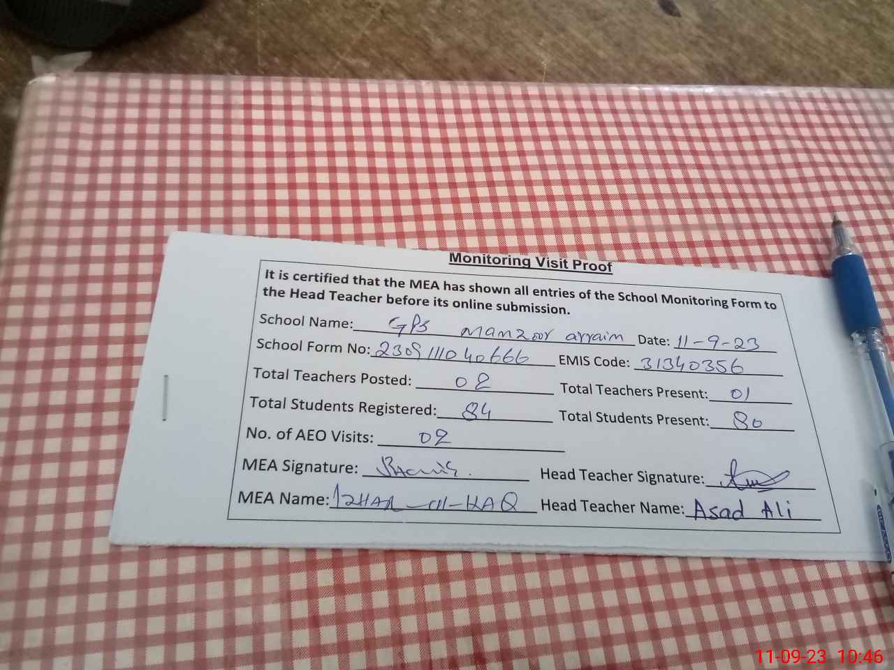 | EMIS Code: 31340356 | Name of School: GPS MANZOOR ARAIN | |||