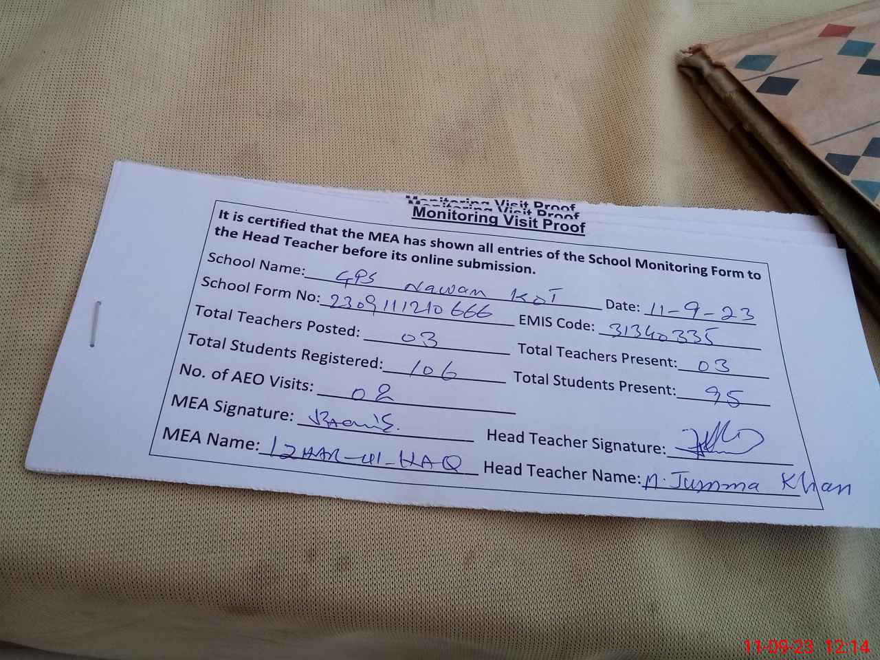 | EMIS Code: 31340335 | Name of School: GPS NAWAN KOT | |||