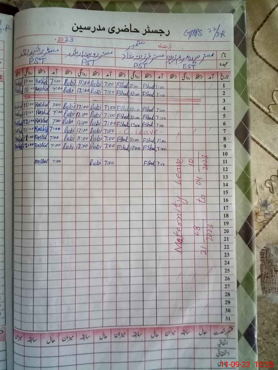 | Leave | Duty | Absent | Maternity | Medical | Ex- Pak |