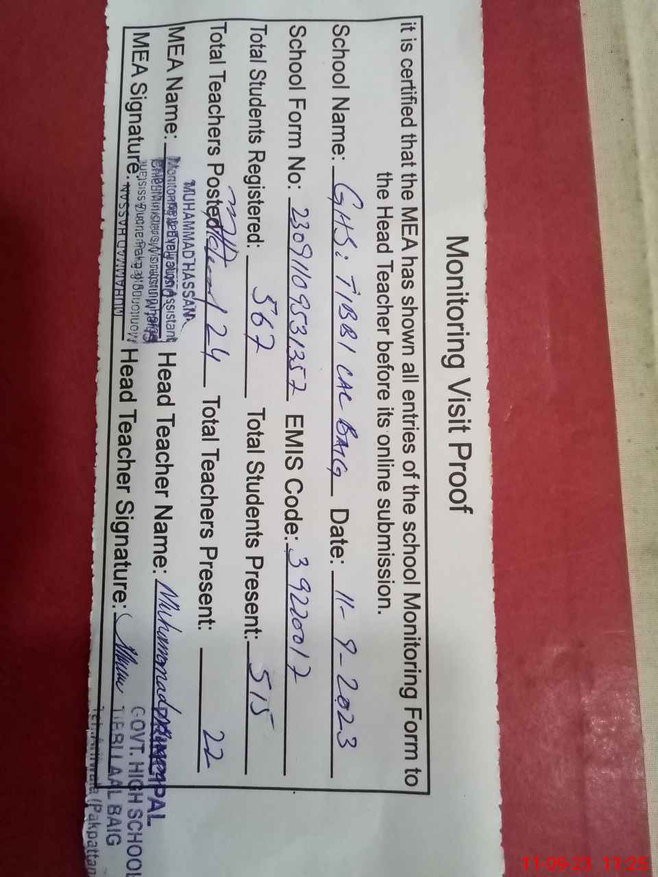 | EMIS Code: 39220017 | Name of School: GHS TIBBI LAL BAIG | |||