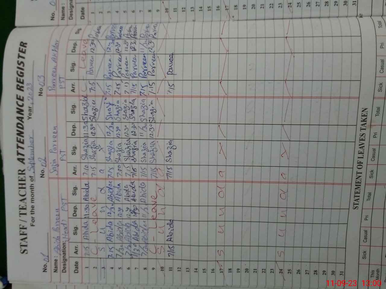 | Leave | Duty | Absent | Maternity | Medical | Ex- Pak |