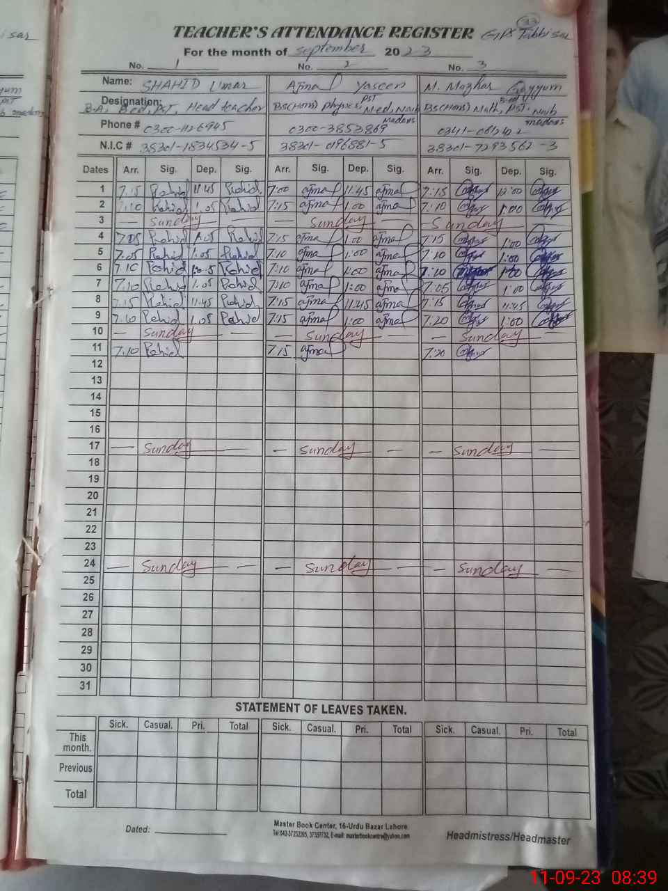 | Name: AJ**** YA**** Designation: (School Headmaster's/Headmistress's) HEADMASTER Phone/Cell Number: 03**** |