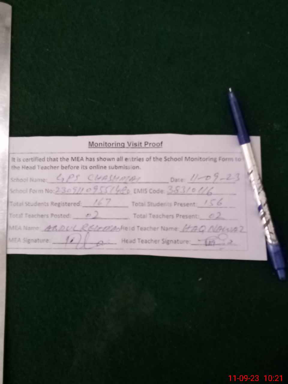| EMIS Code: 38310116 | Name of School: GPS CHASHMAI | |||