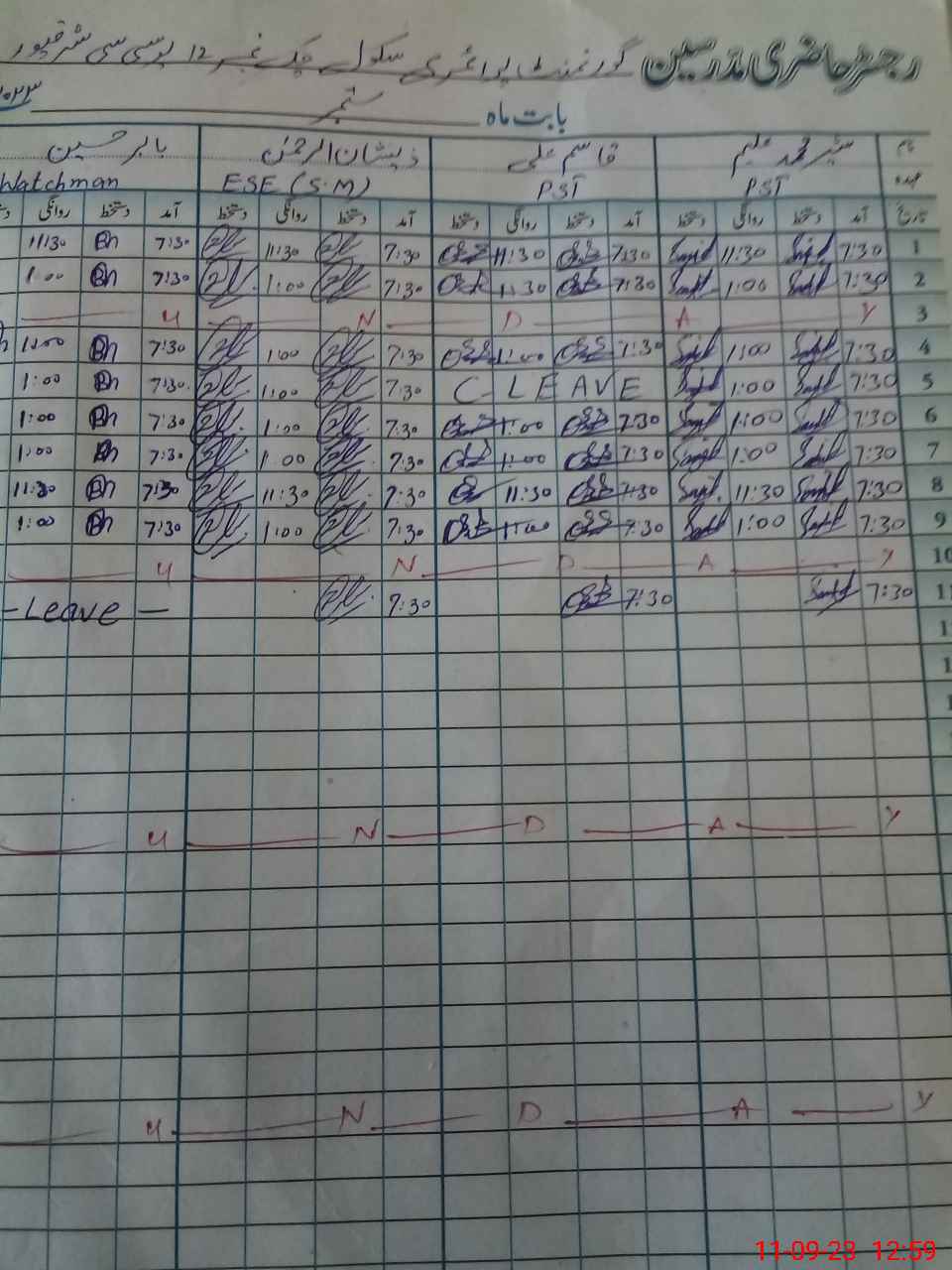 | CNIC | Full Name | Designation | R/C | Absence During Last Calender Month |