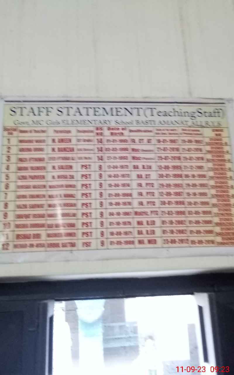 | EMIS Code: 31330111 | Name of School: GGES BASTI AMANAT ALI | |||