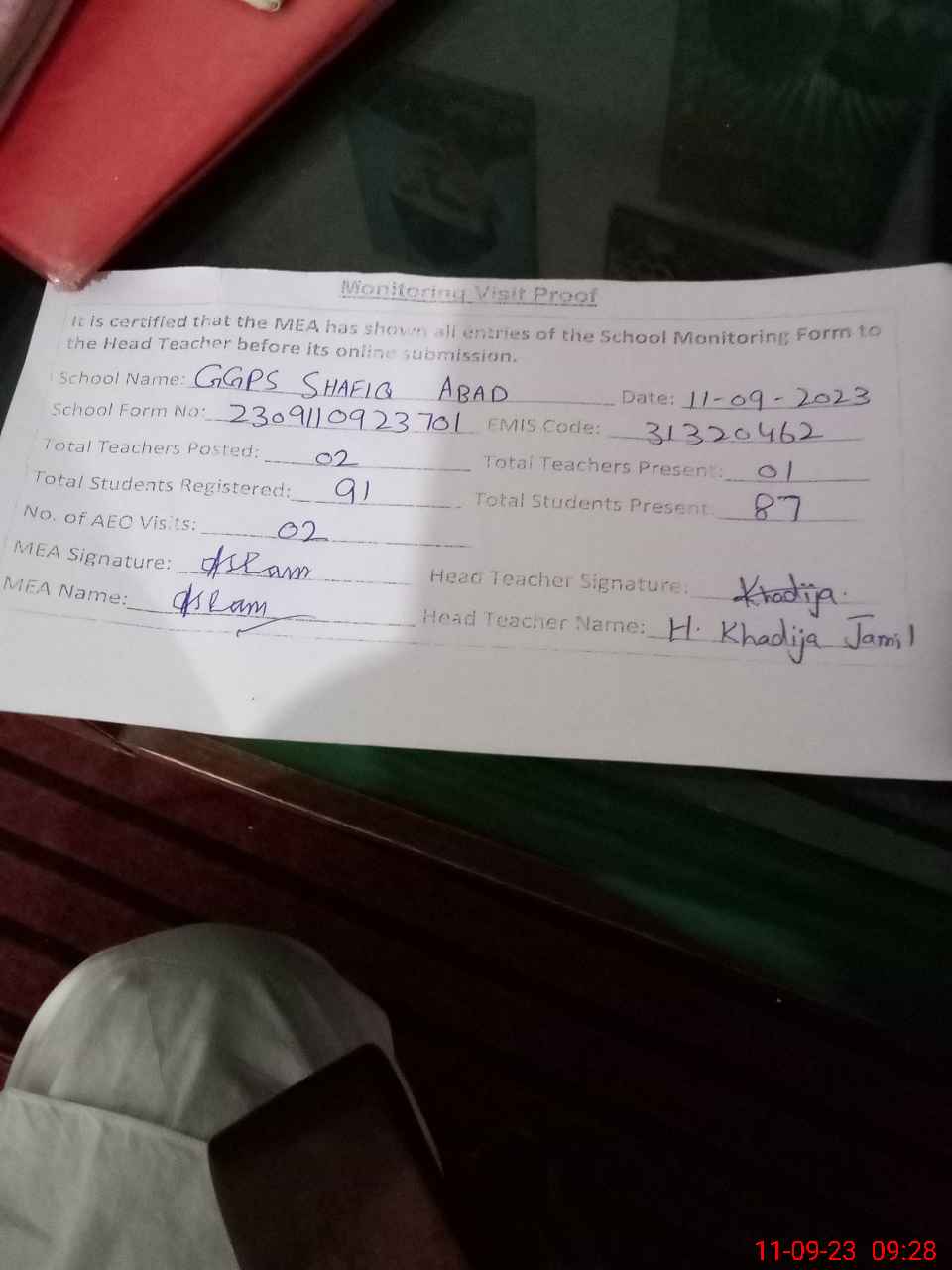 | EMIS Code: 31320462 | Name of School: GGPS SHAFIQ ABAD | |||