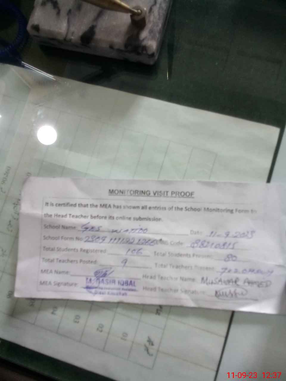 | Certified that this School was Inspected by the Undersigned MEA/DMO Today and the Information Stated Above is as Per Record. | |||||
