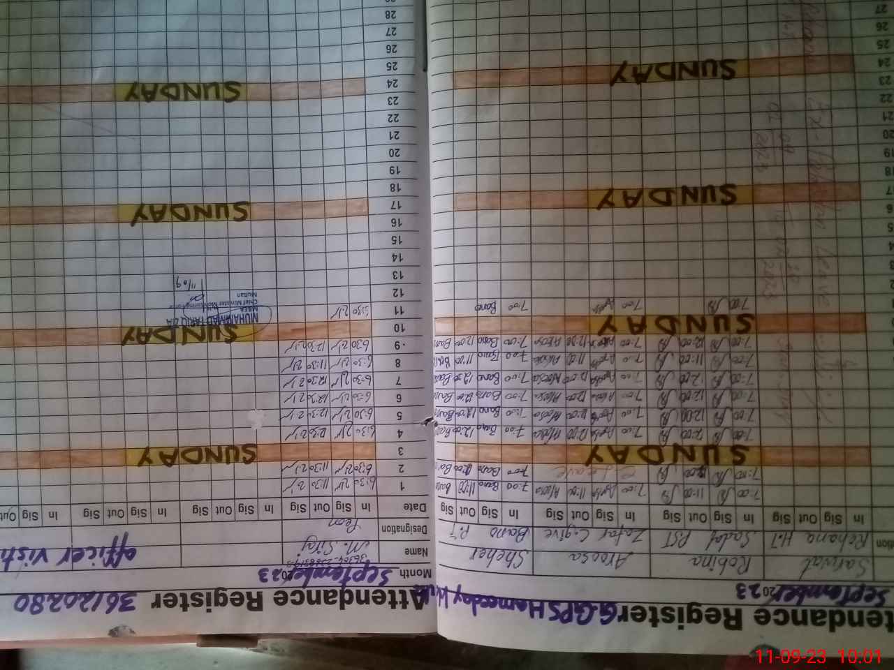 | Monitoring Date: 11-09-2023 | Start Time: 11-09-2023 09:55 AM | End Time: 11-09-2023 10:39 AM | Name of MEA: Mu**** Ta**** Zi**** | |
