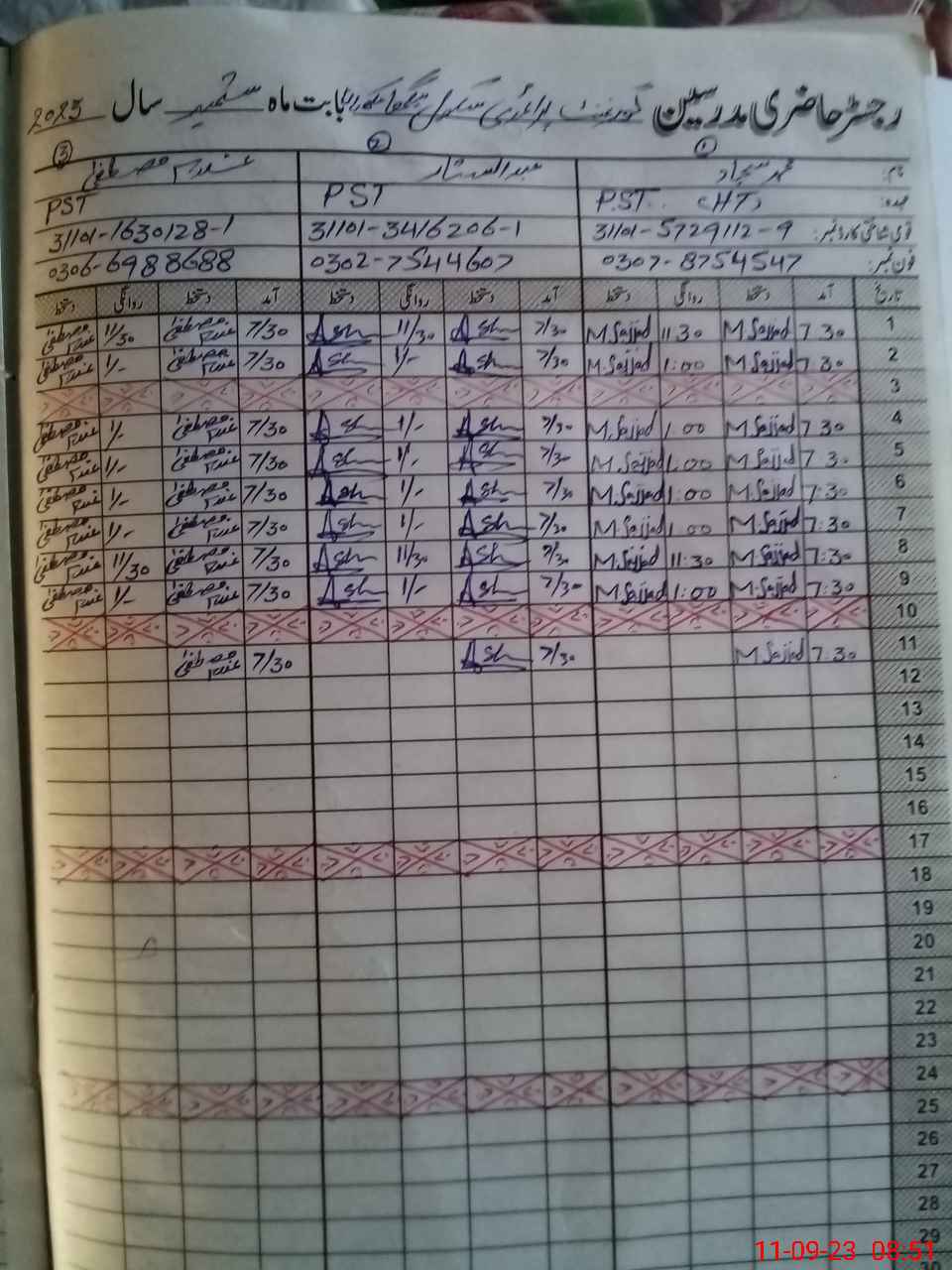 | Name: Mu**** Sa**** Designation: (School Headmaster's/Headmistress's) PST Phone/Cell Number: 03**** |