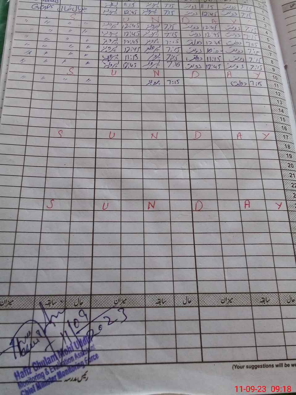 | Monitoring Date: 11-09-2023 | Start Time: 11-09-2023 09:00 AM | End Time: 11-09-2023 09:23 AM | Name of MEA: HA**** GH**** MO**** UDDI**** | |