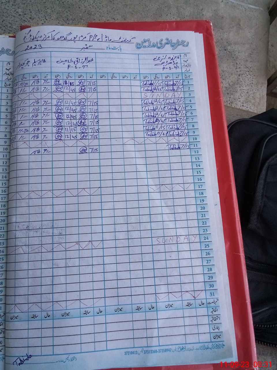 | CNIC | Full Name | Designation | R/C | Absence During Last Calender Month |