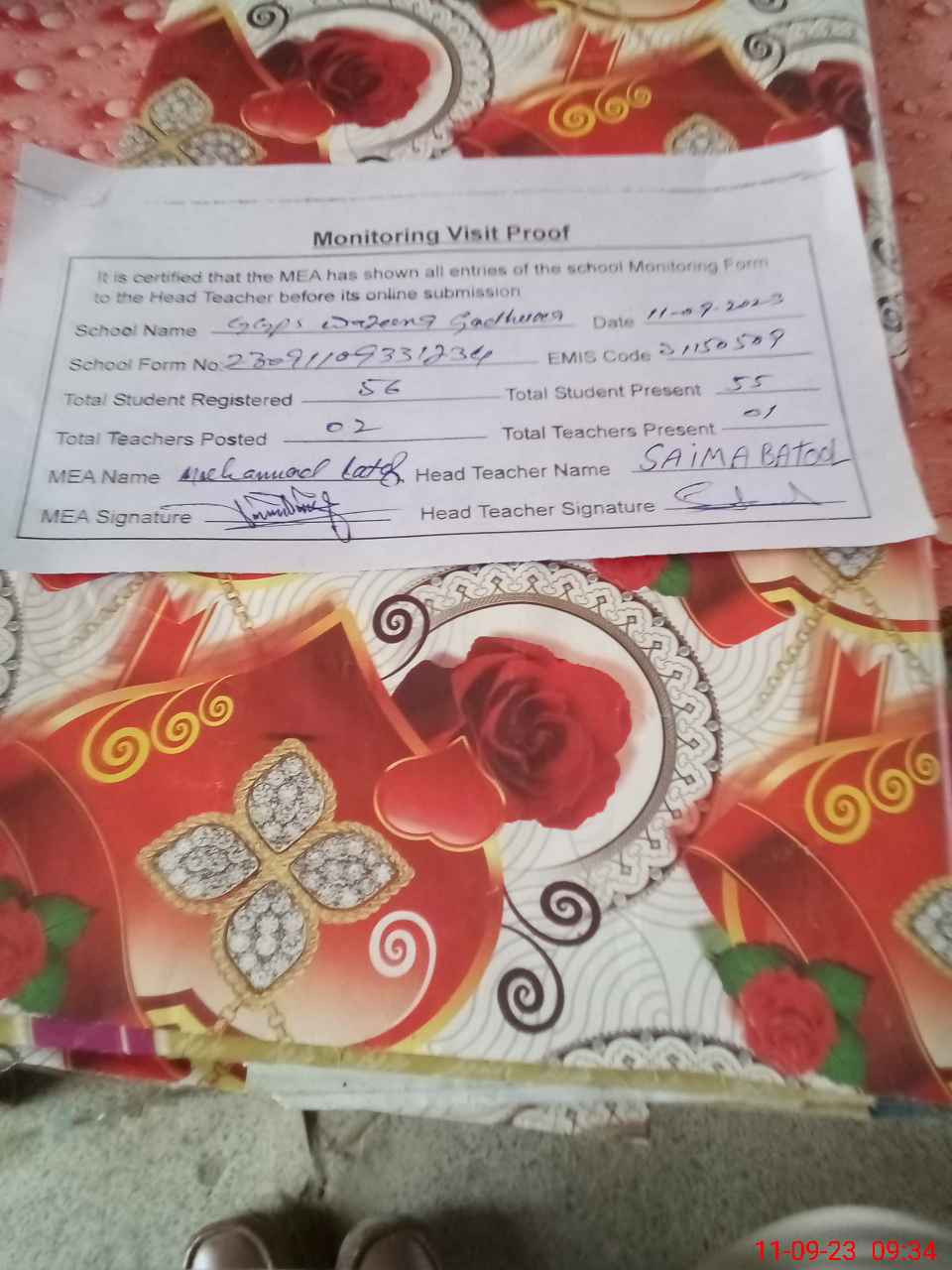 | EMIS Code: 31150509 | Name of School: GGPS WAZEERA GADHOKA | |||