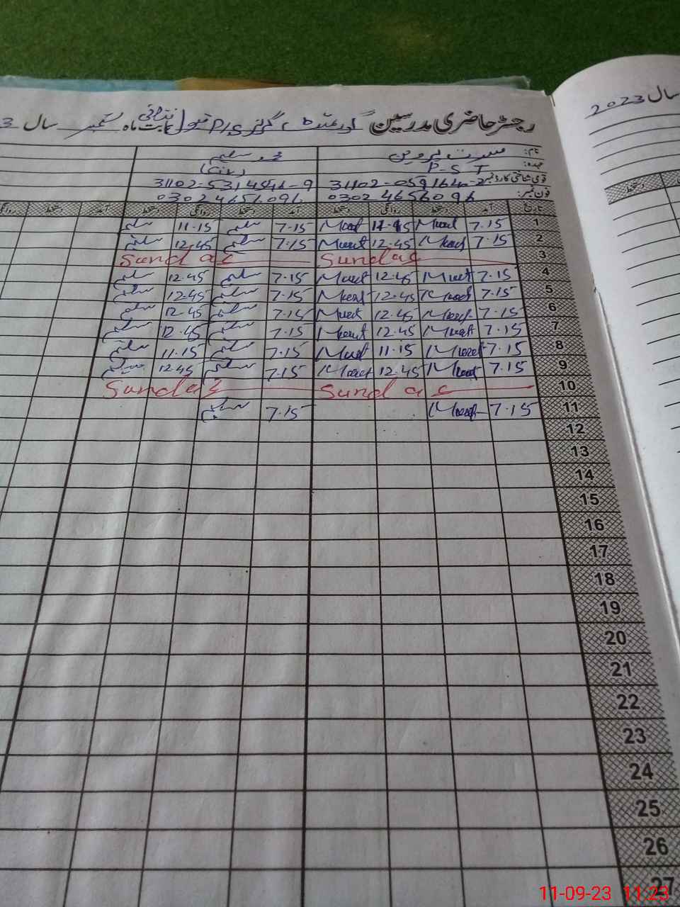 | Name: MU**** PE**** Designation: (School Headmaster's/Headmistress's) PST Phone/Cell Number: 03**** |