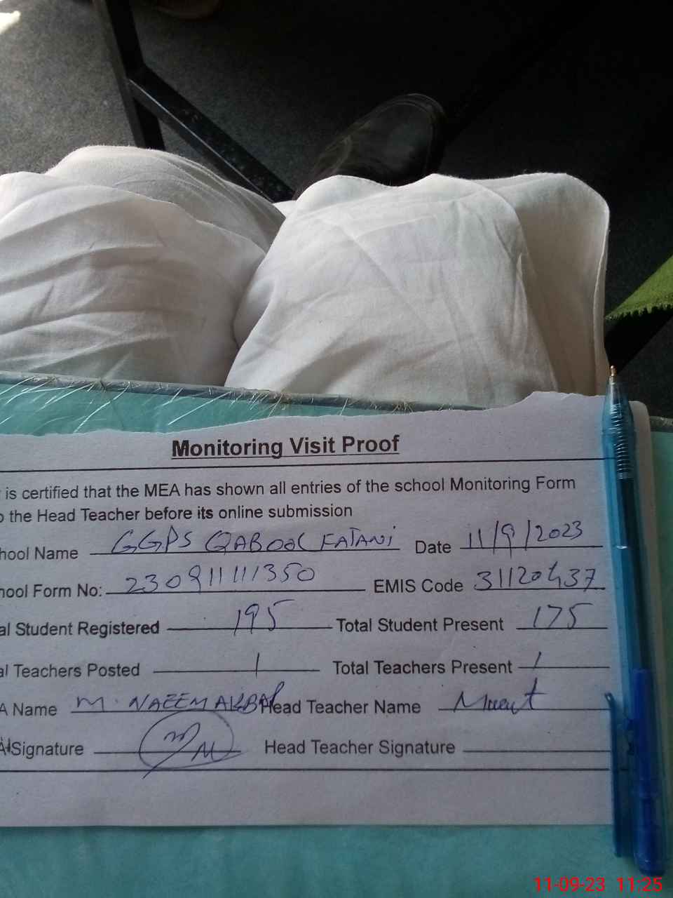 | Attendance Register | Head Teacher | MEA with School | Visit Proof |