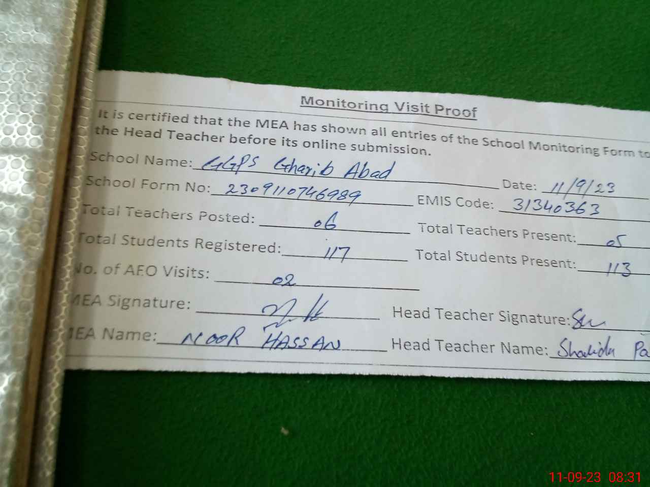 | EMIS Code: 31340363 | Name of School: GGPS GHARIB ABAD GALIB STREET 3 | |||