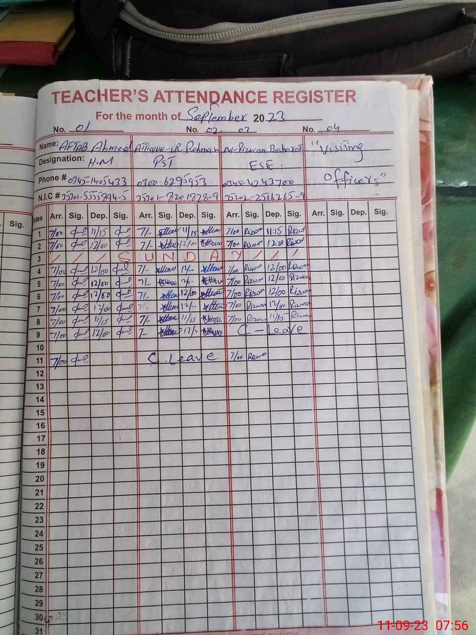 | 38**** | Wa**** Ah**** Kh**** | Feader Teacher | Temporary | 0 | 0 | 0 | 0 | 0 | 0 | 0 | 0 | 0 | Absent (Un-Authorized) |