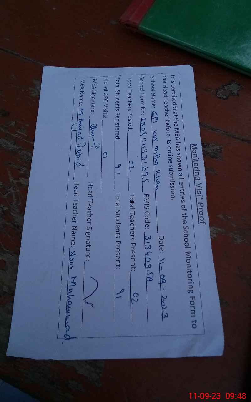 | EMIS Code: 31340358 | Name of School: GPS KOT MITHA KHAN | |||