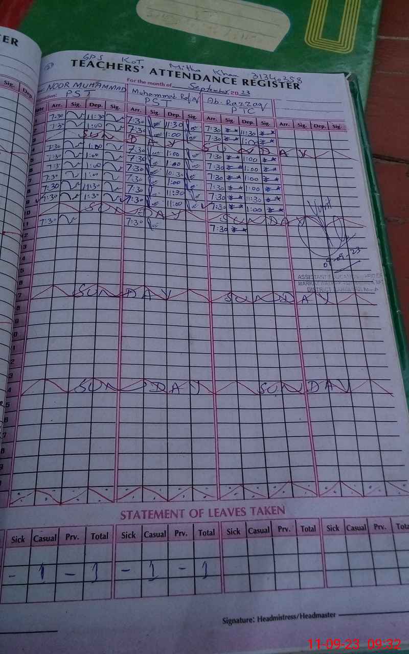 | Name: No**** Mu**** Designation: (School Headmaster's/Headmistress's) PST Phone/Cell Number: 03**** |