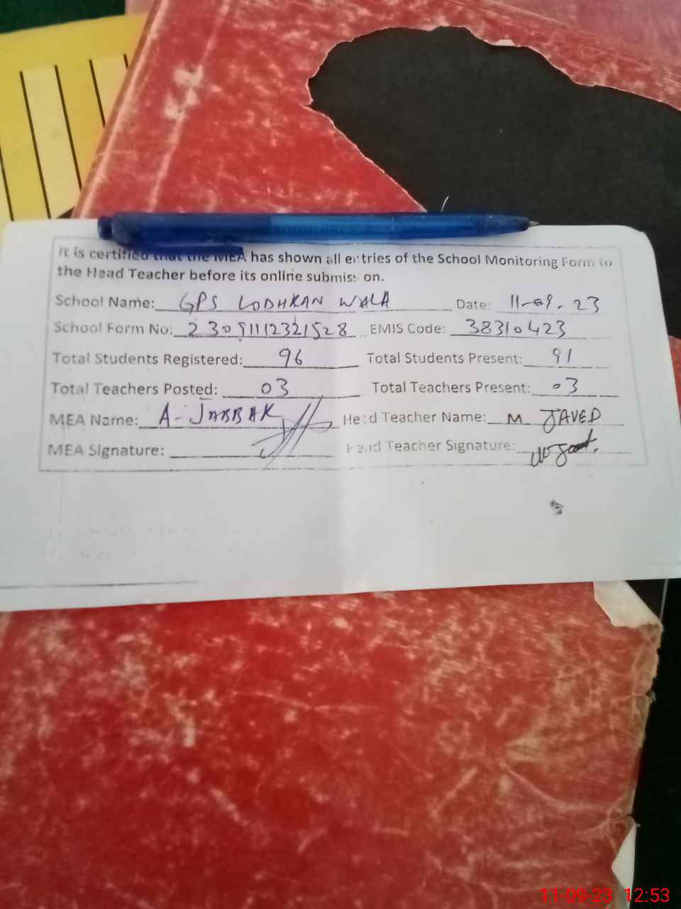 | EMIS Code: 38310423 | Name of School: GPS LODHRAN WALA | |||