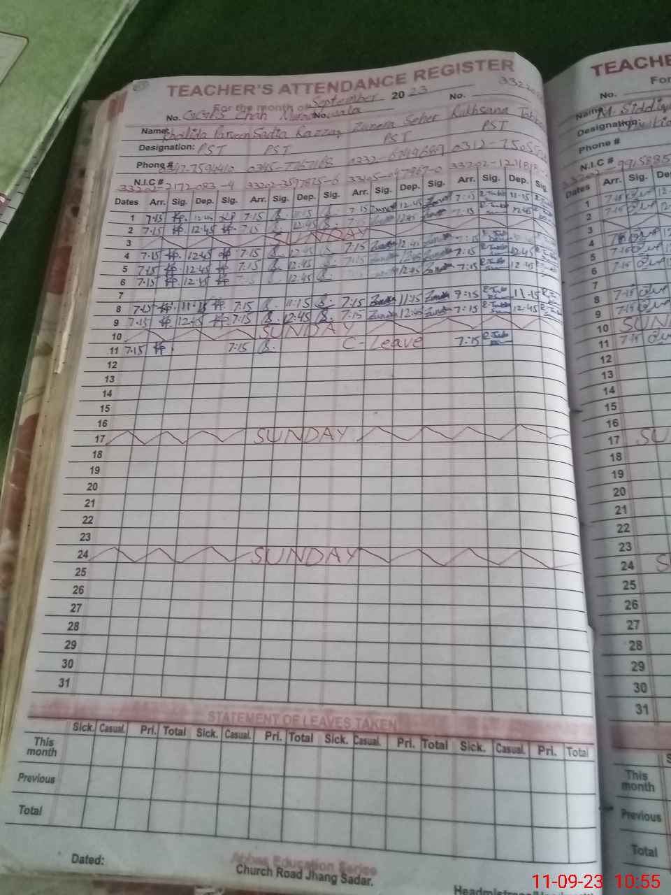 | Name: KH**** PE**** Designation: (School Headmaster's/Headmistress's) PST Phone/Cell Number: 03**** |
