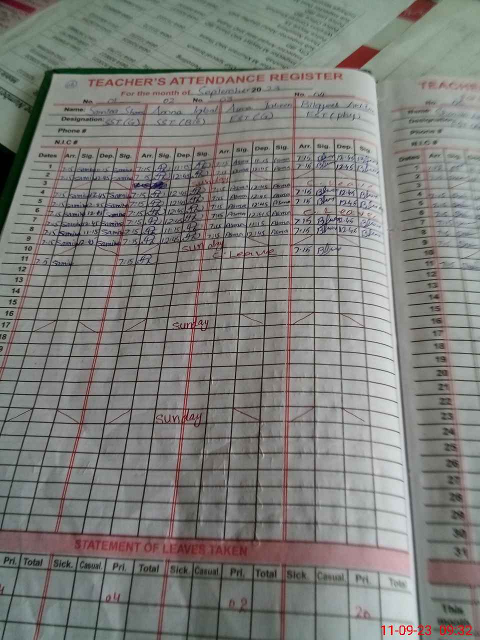 | CNIC | Full Name | Designation | R/C | Absence During Last Calender Month |