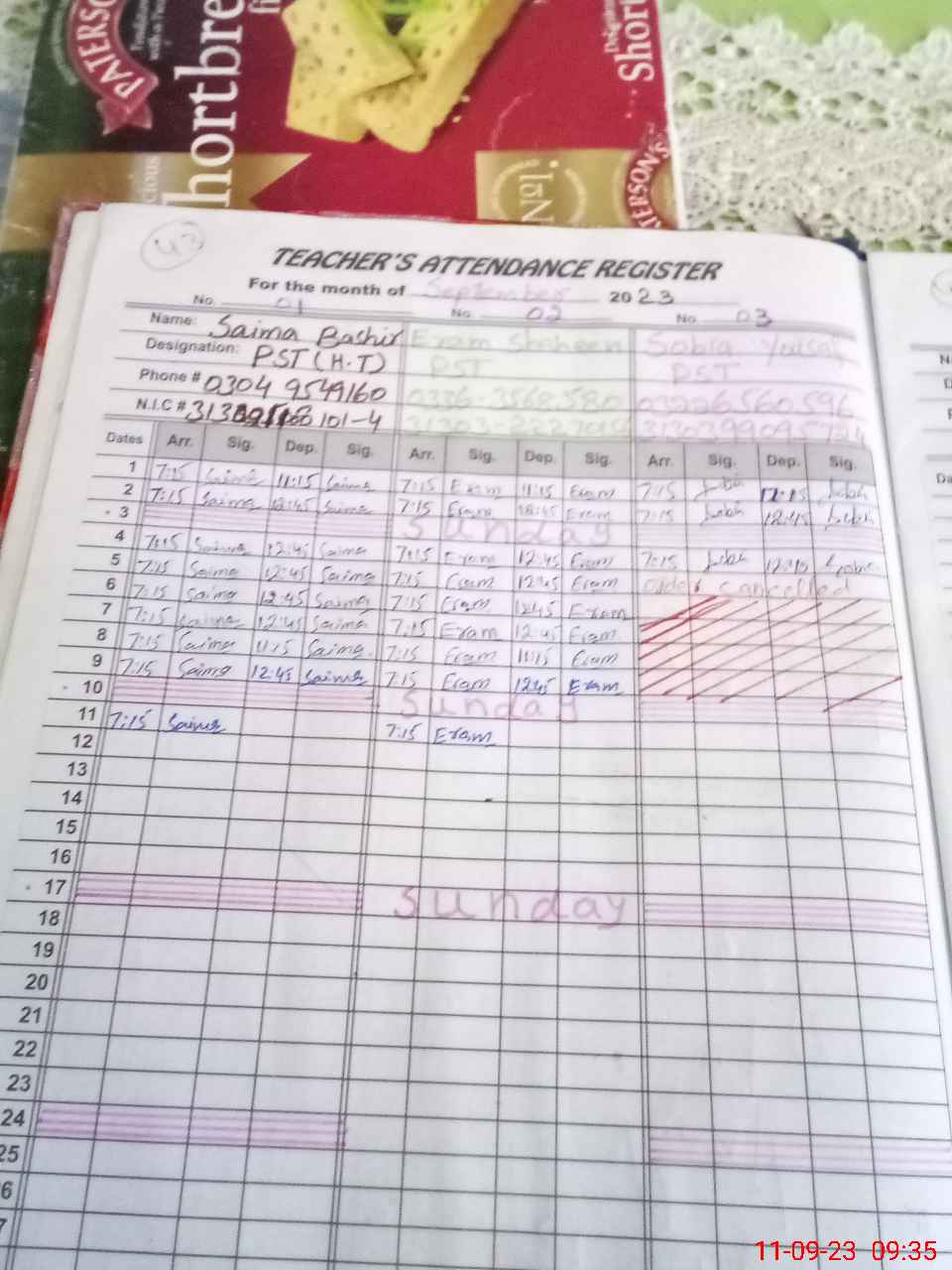 | Name: Sa**** Ba**** Designation: (School Headmaster's/Headmistress's) PST Phone/Cell Number: 03**** |