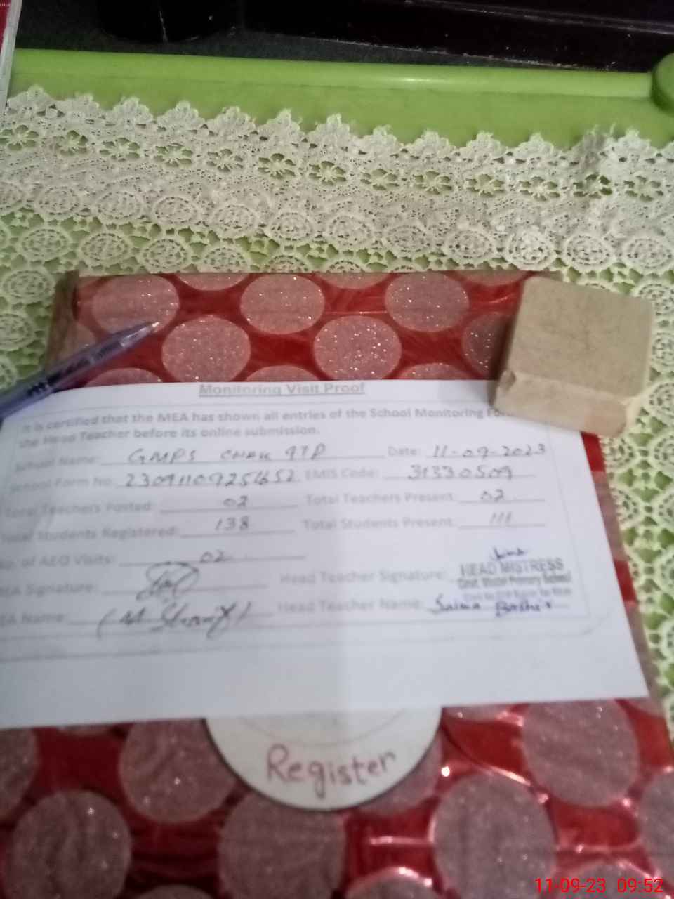| EMIS Code: 31330509 | Name of School: GMPS CHAK 97/P | |||