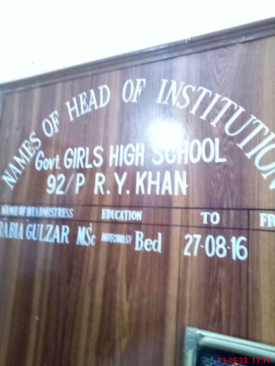 | EMIS Code: 31330119 | Name of School: GGHS CHAK NO. 92/P | |||