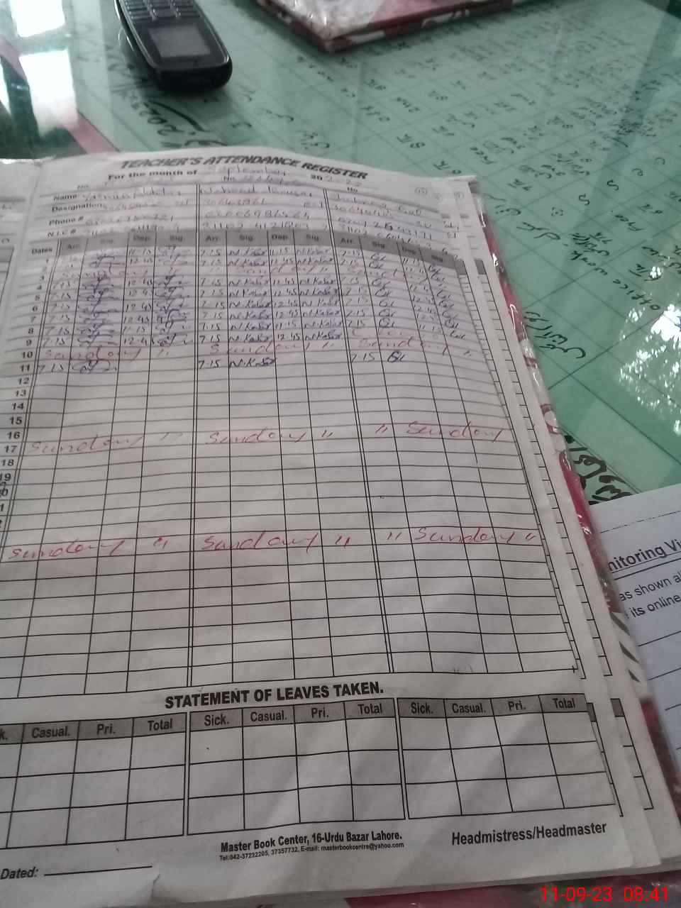 | Name: YA**** AK**** Designation: (School Headmaster's/Headmistress's) S.S.T. GENERAL Phone/Cell Number: 03**** |