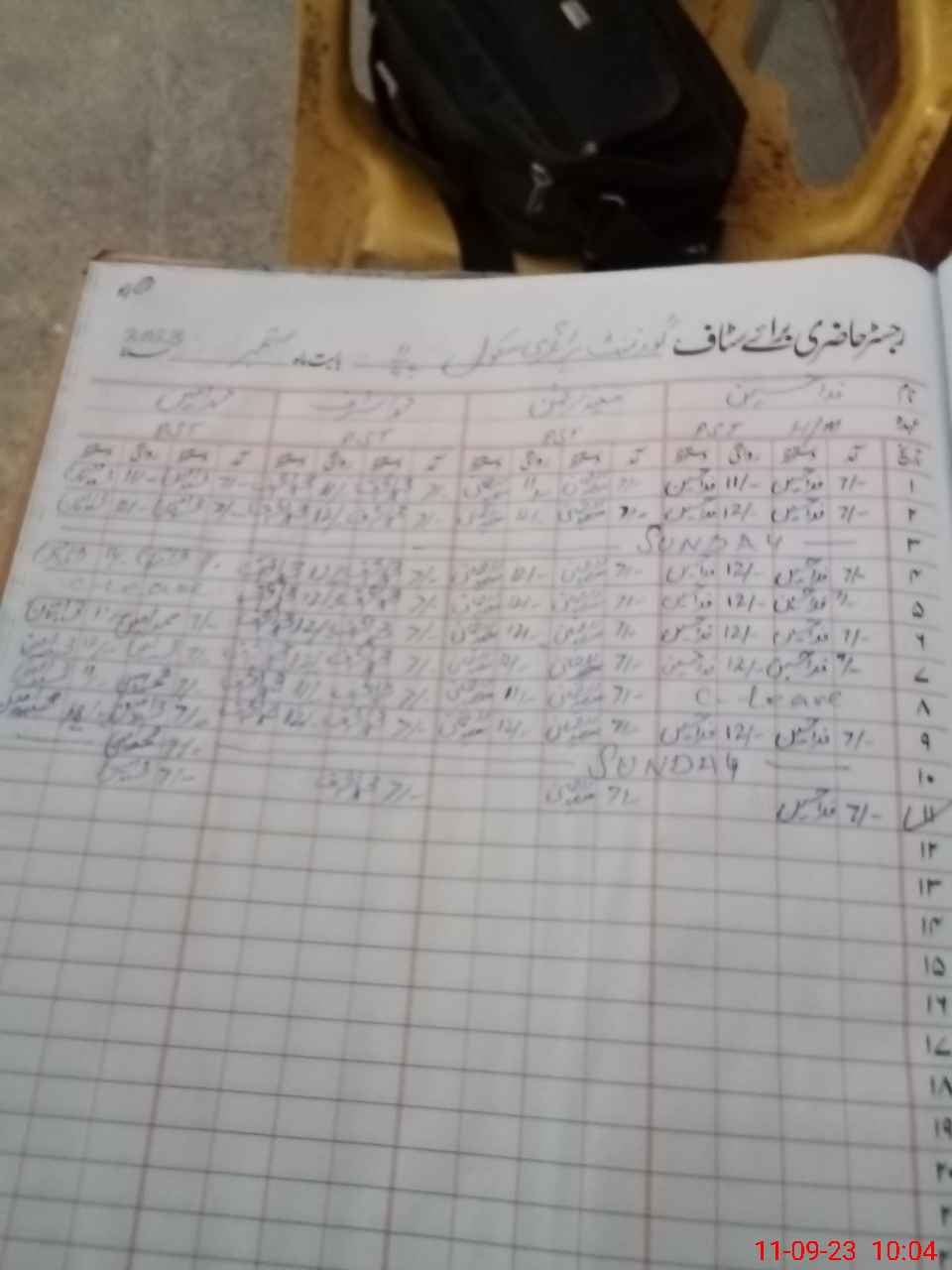 | CNIC | Full Name | Designation | R/C | Absence During Last Calender Month |