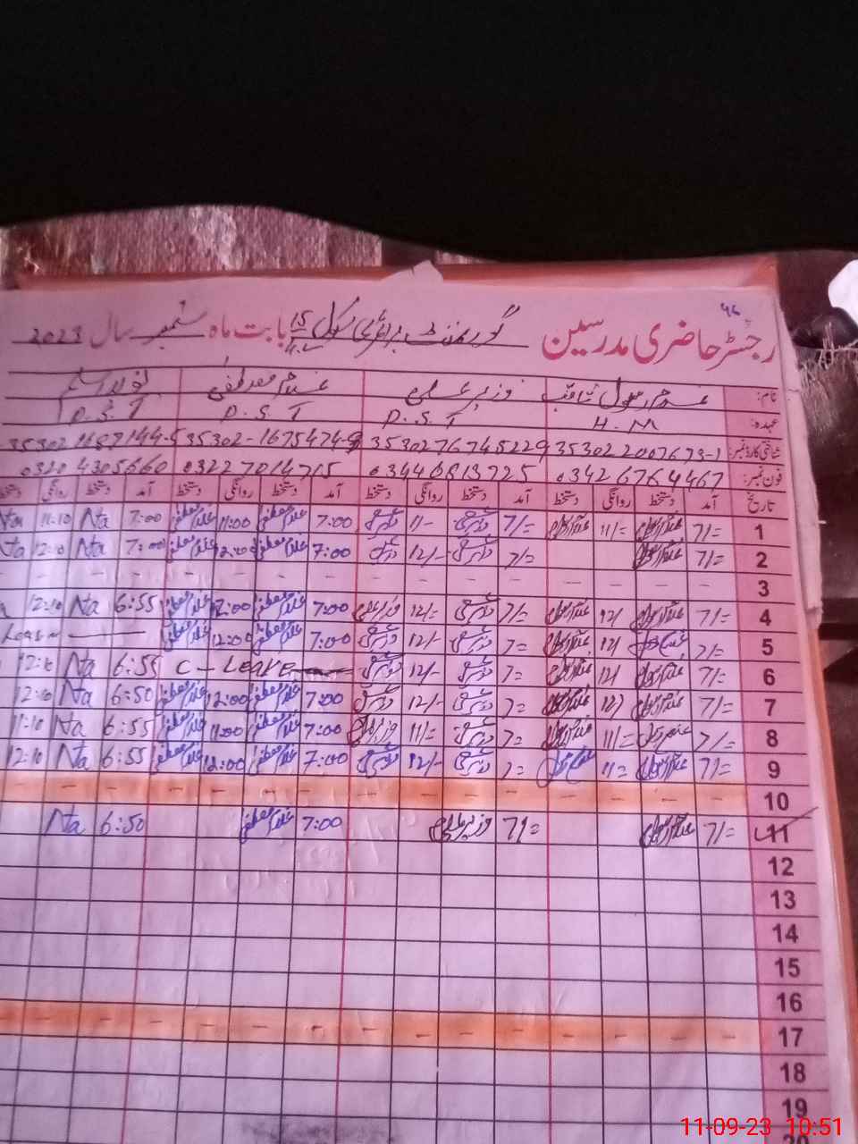 | Name: Na**** As**** Designation: (School Headmaster's/Headmistress's) PST Phone/Cell Number: 03**** |
