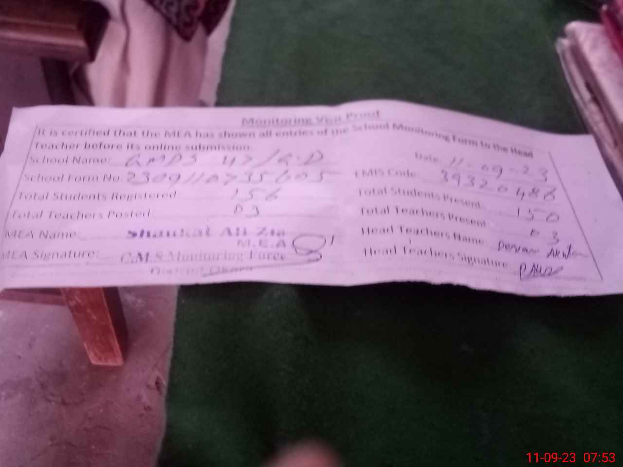 | Monitoring Date: 11-09-2023 | Start Time: 11-09-2023 07:35 AM | End Time: 11-09-2023 08:09 AM | Name of MEA: SH**** AL**** ZI**** (R**** | |