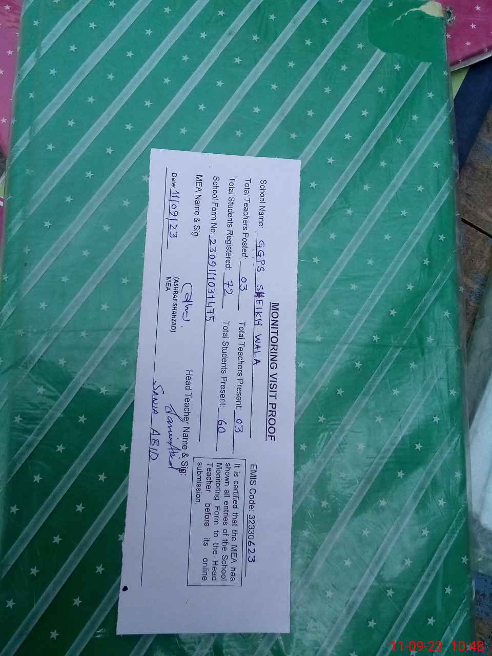 | EMIS Code: 32330623 | Name of School: GGPS SHEIKH WALA | |||