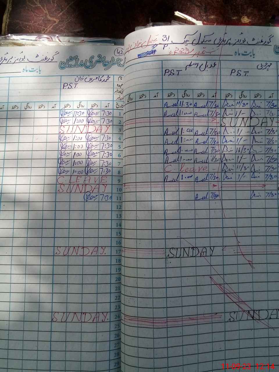 | CNIC | Full Name | Designation | R/C | Absence During Last Calender Month |