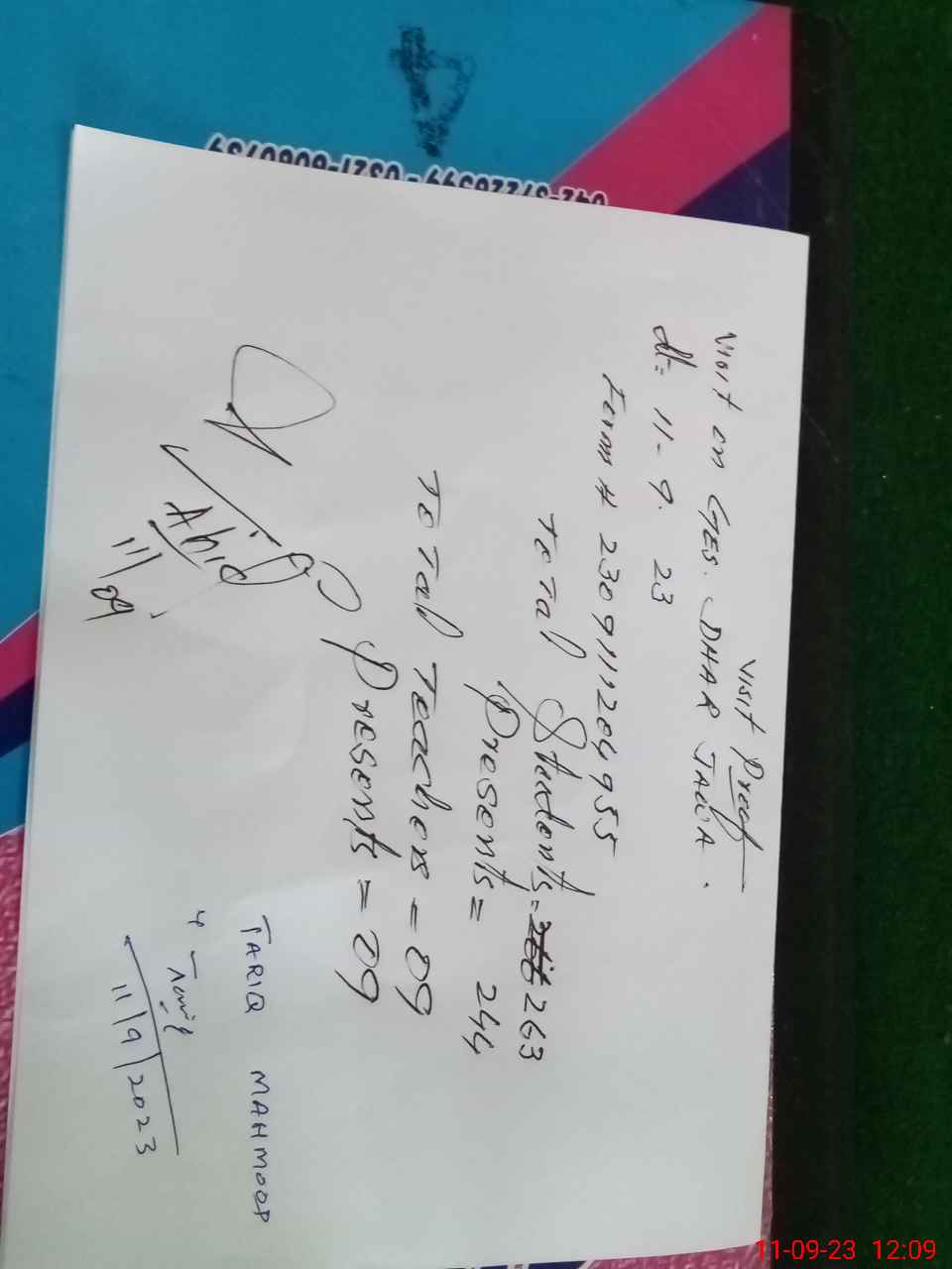 | Name: Ta**** Me**** Designation: (School Headmaster's/Headmistress's) Sst Phone/Cell Number: 03**** |
