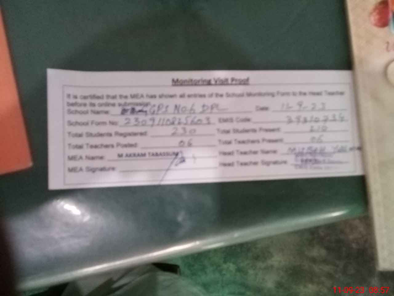 | EMIS Code: 39310734 | Name of School: GGPS NO.6 DEPALPUR | |||