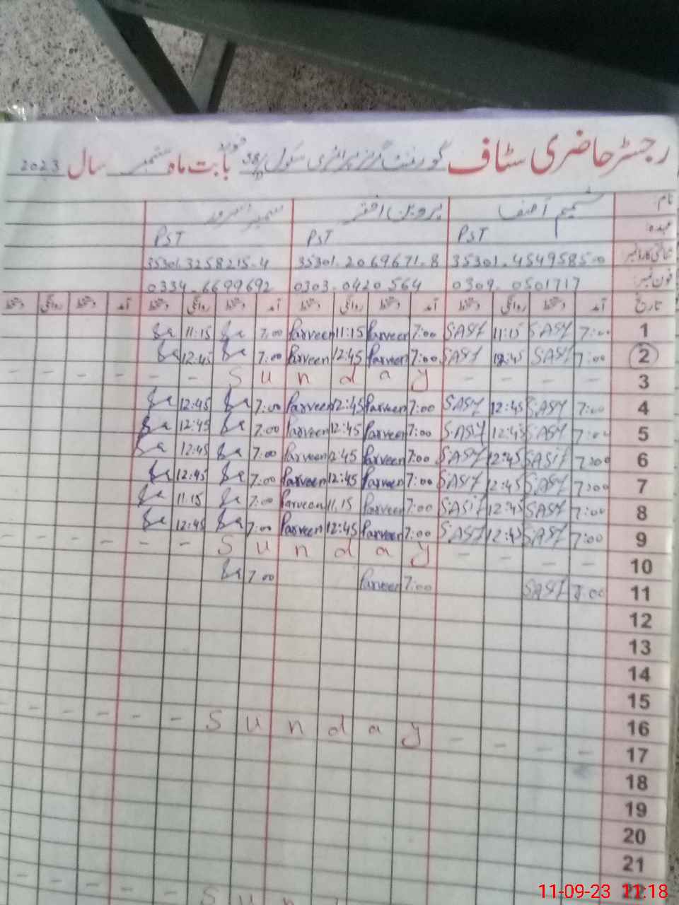 | Name: Sh**** As**** Designation: (School Headmaster's/Headmistress's) PST Phone/Cell Number: 03**** |