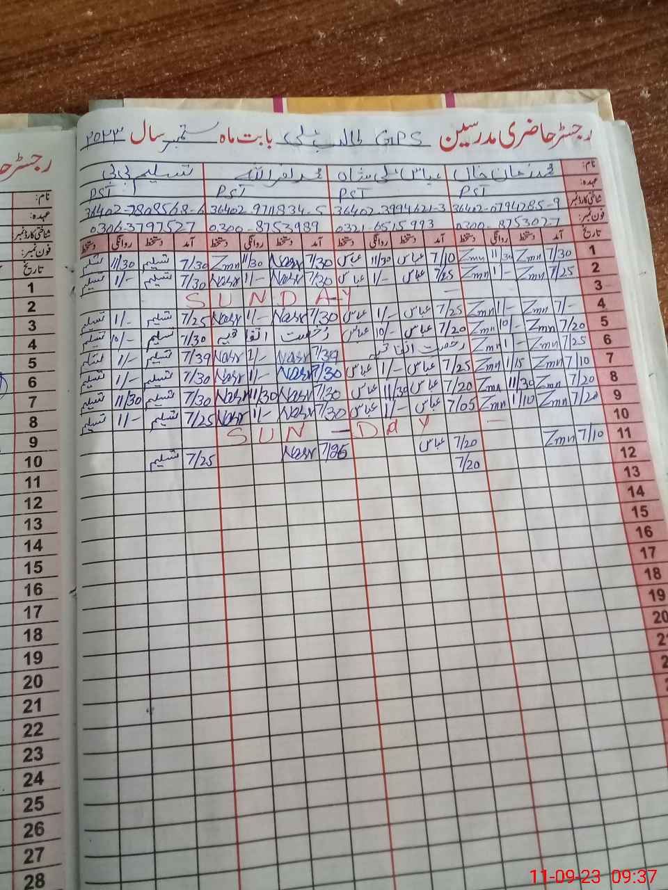 | Name: Ab**** Al**** Sh**** Designation: (School Headmaster's/Headmistress's) PST Phone/Cell Number: 03**** |