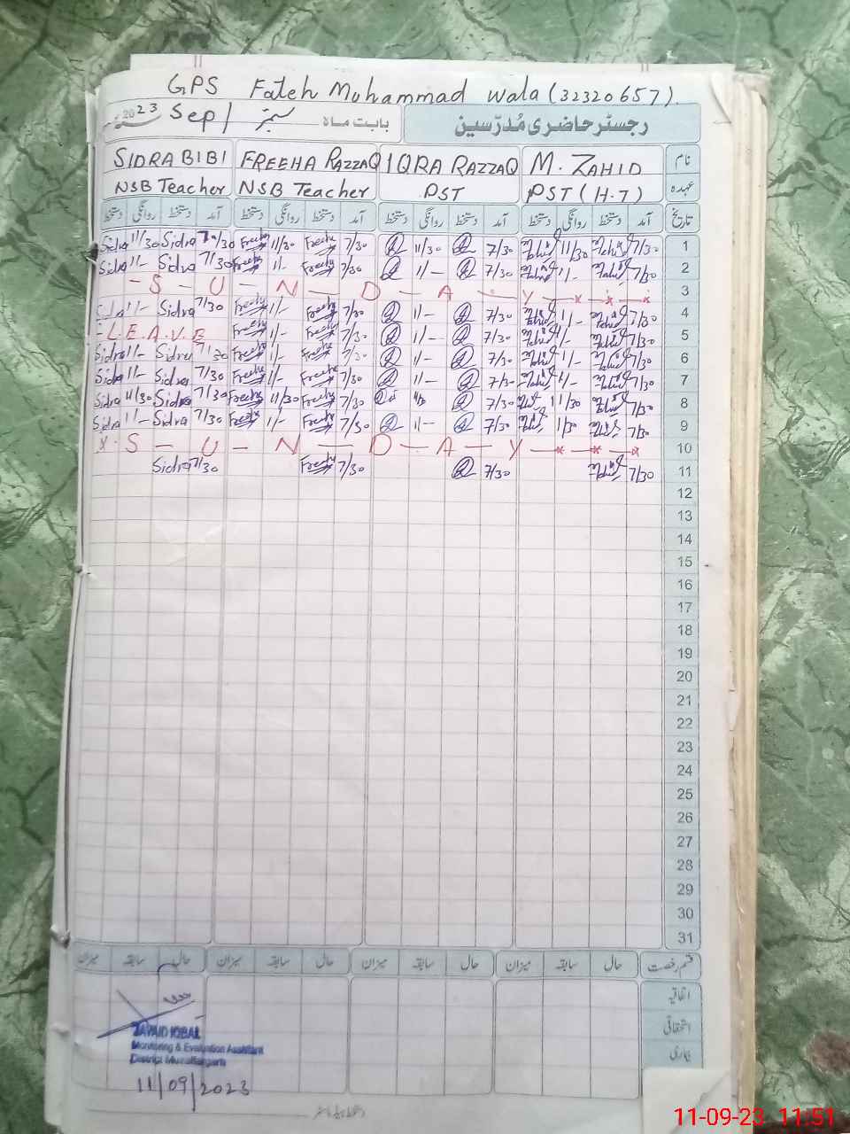 | EMIS Code: 32320657 | Name of School: GPS FATEH MUHAMMAD WALA | |||