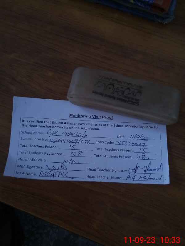 | EMIS Code: 31320007 | Name of School: GHS CHAK 42 A | |||