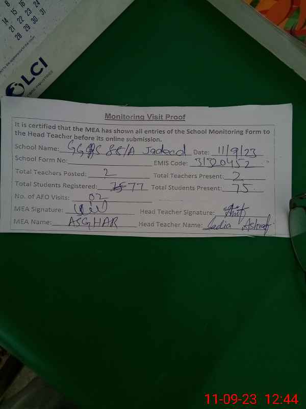 | Certified that this School was Inspected by the Undersigned MEA/DMO Today and the Information Stated Above is as Per Record. | |||||