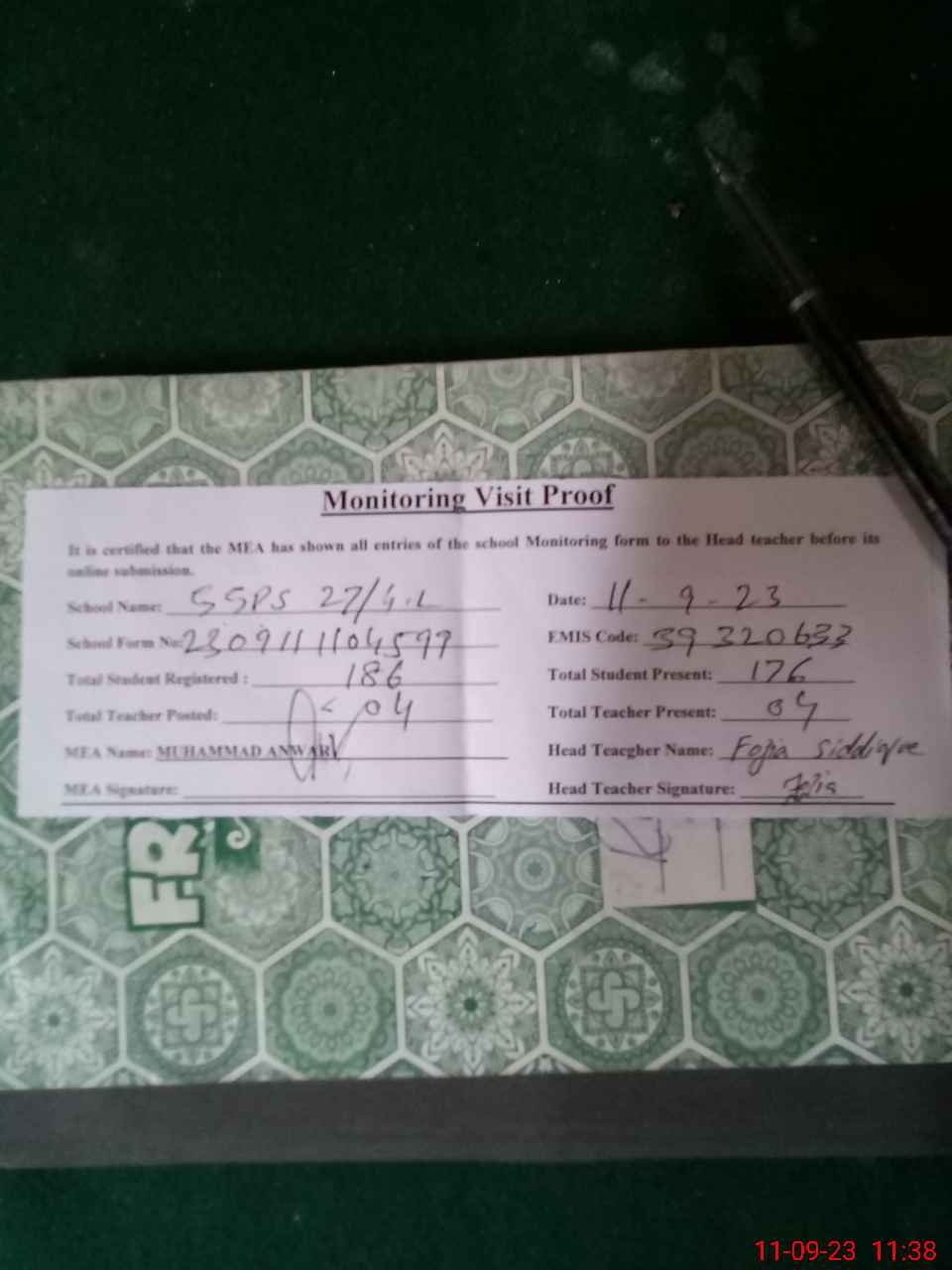 | EMIS Code: 39320633 | Name of School: GGPS CHAK NO. 27/4-L | |||