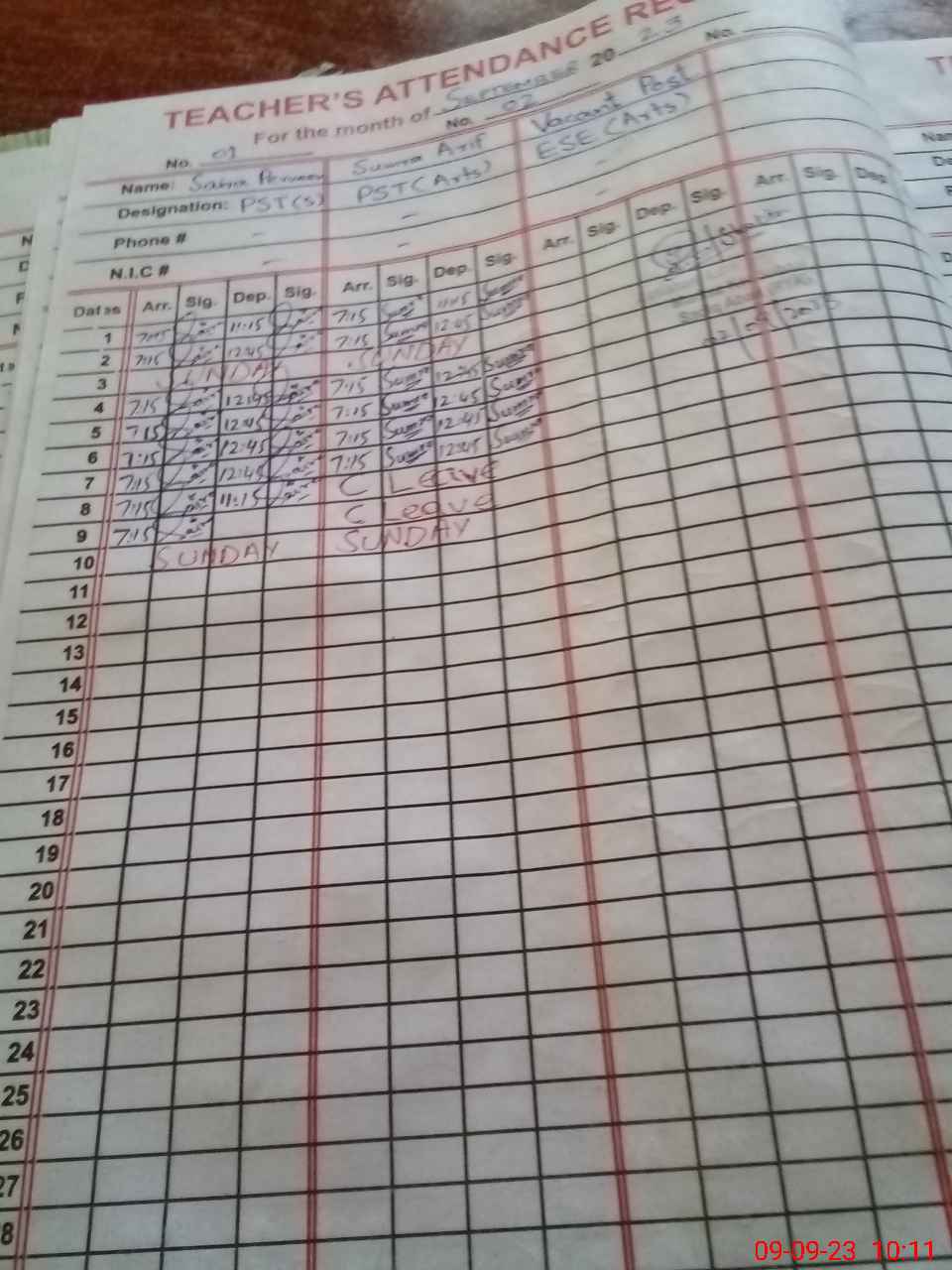 | Name: Sa**** Pe**** Designation: (School Headmaster's/Headmistress's) PST Phone/Cell Number: 03**** |