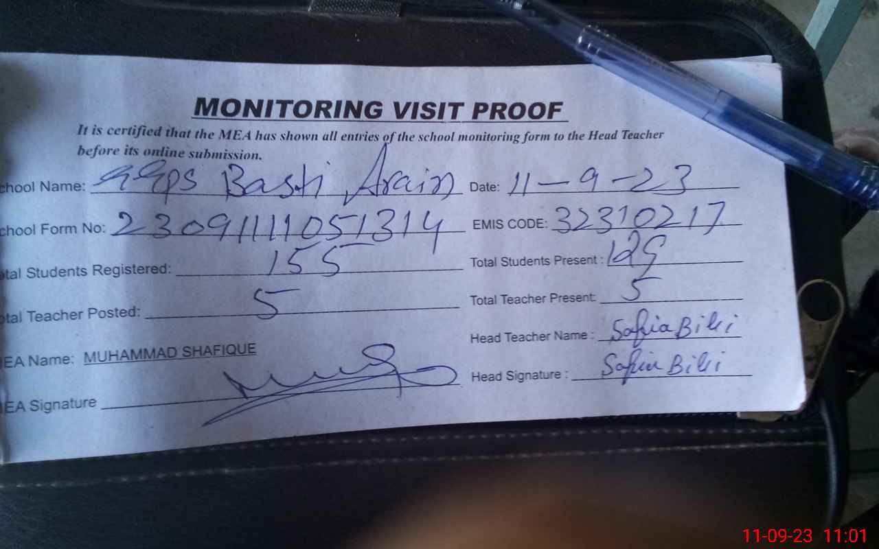 | EMIS Code: 32310217 | Name of School: GGPS BASTI ARAIN | |||