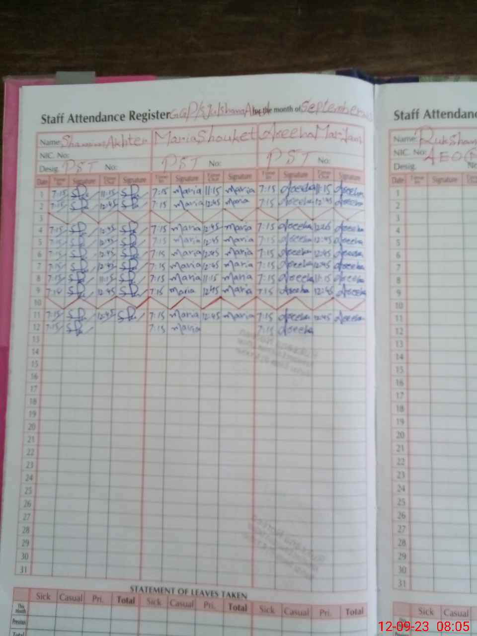 | CNIC | Full Name | Designation | R/C | Absence During Last Calender Month |