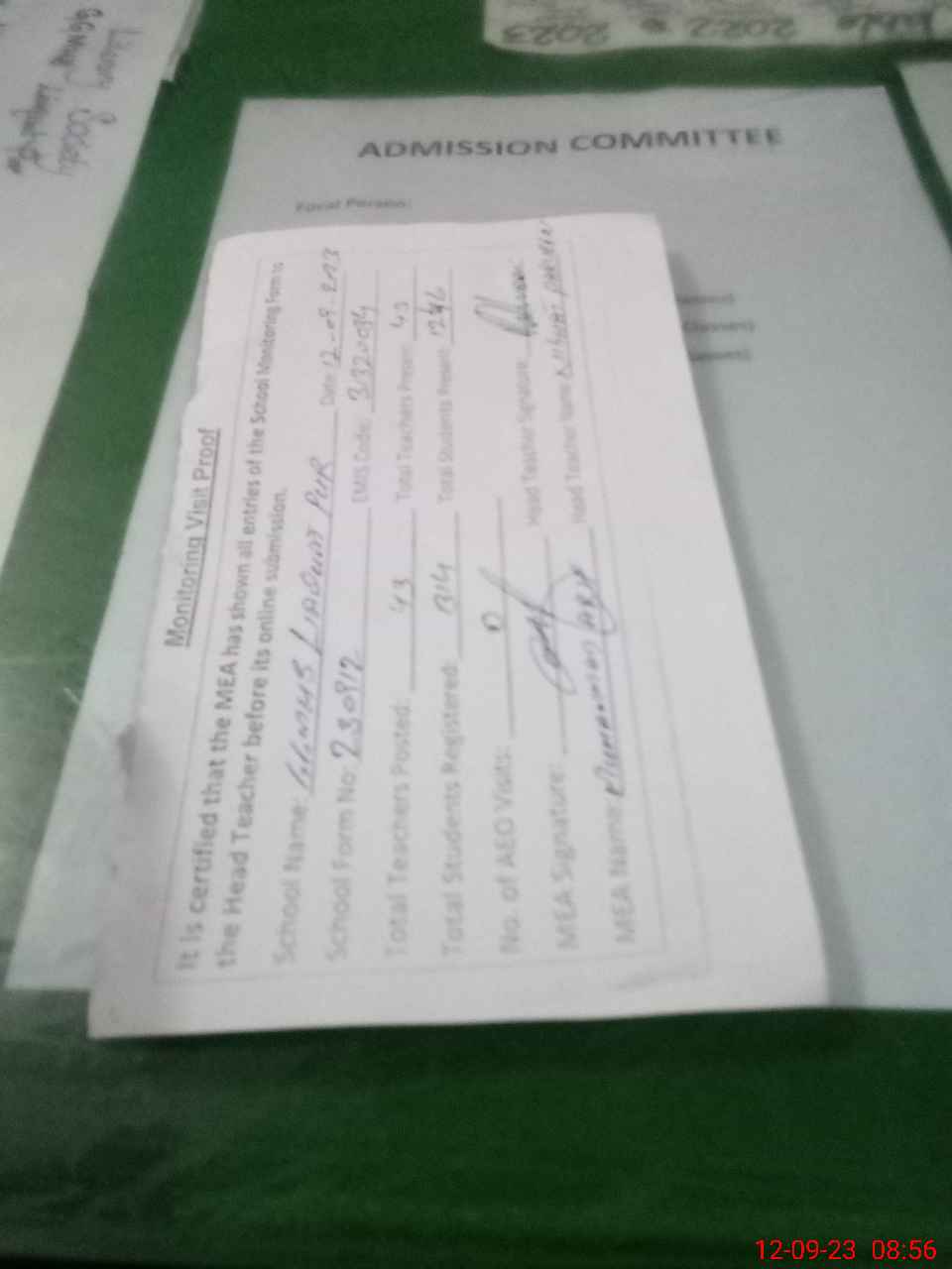 | Certified that this School was Inspected by the Undersigned MEA/DMO Today and the Information Stated Above is as Per Record. | |||||