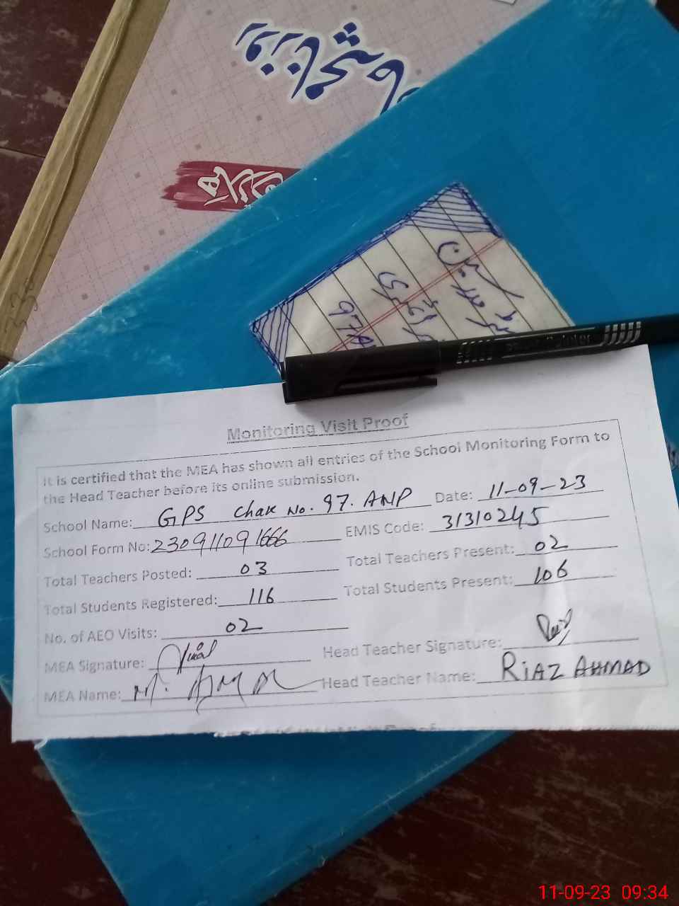| EMIS Code: 31310245 | Name of School: GPS CHAK NO 97 ANP | |||